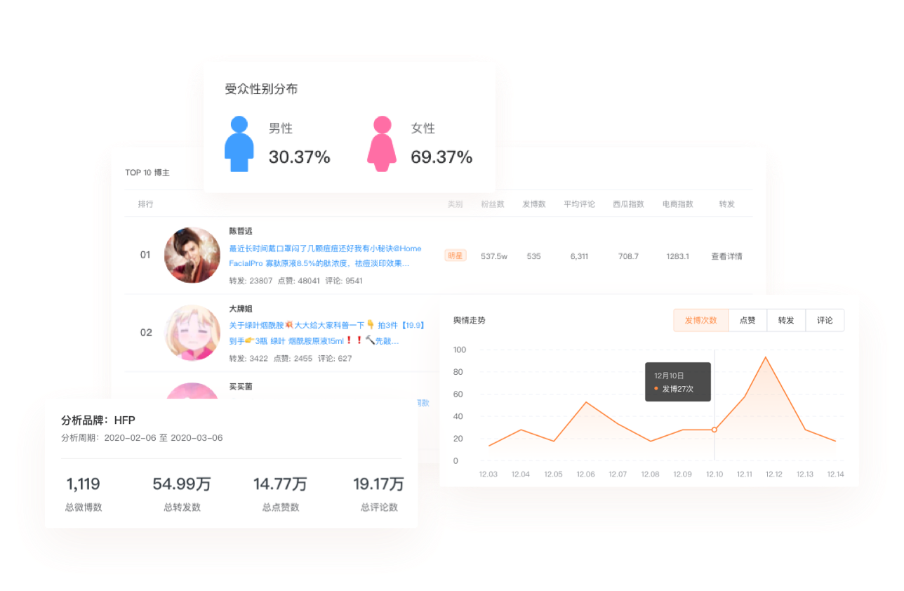 實時追蹤傳播動態,掌握互動變化趨勢,有效判斷數據真偽、分析受眾畫像